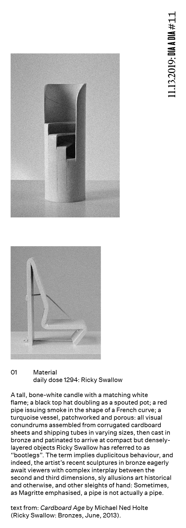 Daily Dose is a non-profit art and architecture newsletter, supported by Atelier Fuso & AHA Paris, and curated by Raphaël Kadid. Everyday, they send their followers a reference — be it on architectural, artistic or design projects. For Dia a Dia, Raphaël chose five past daily doses: they are reproduced in the last five issues of the magazine.